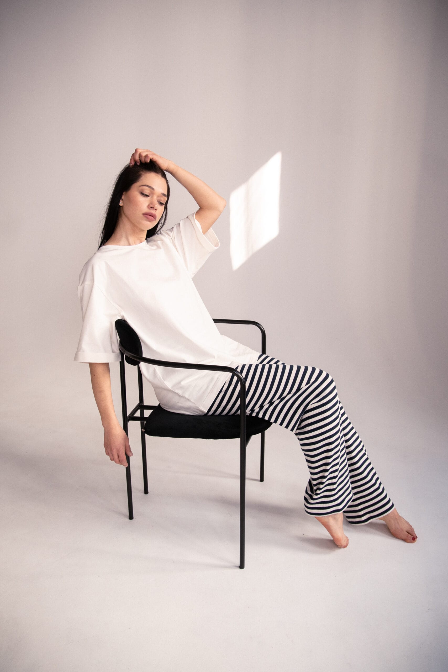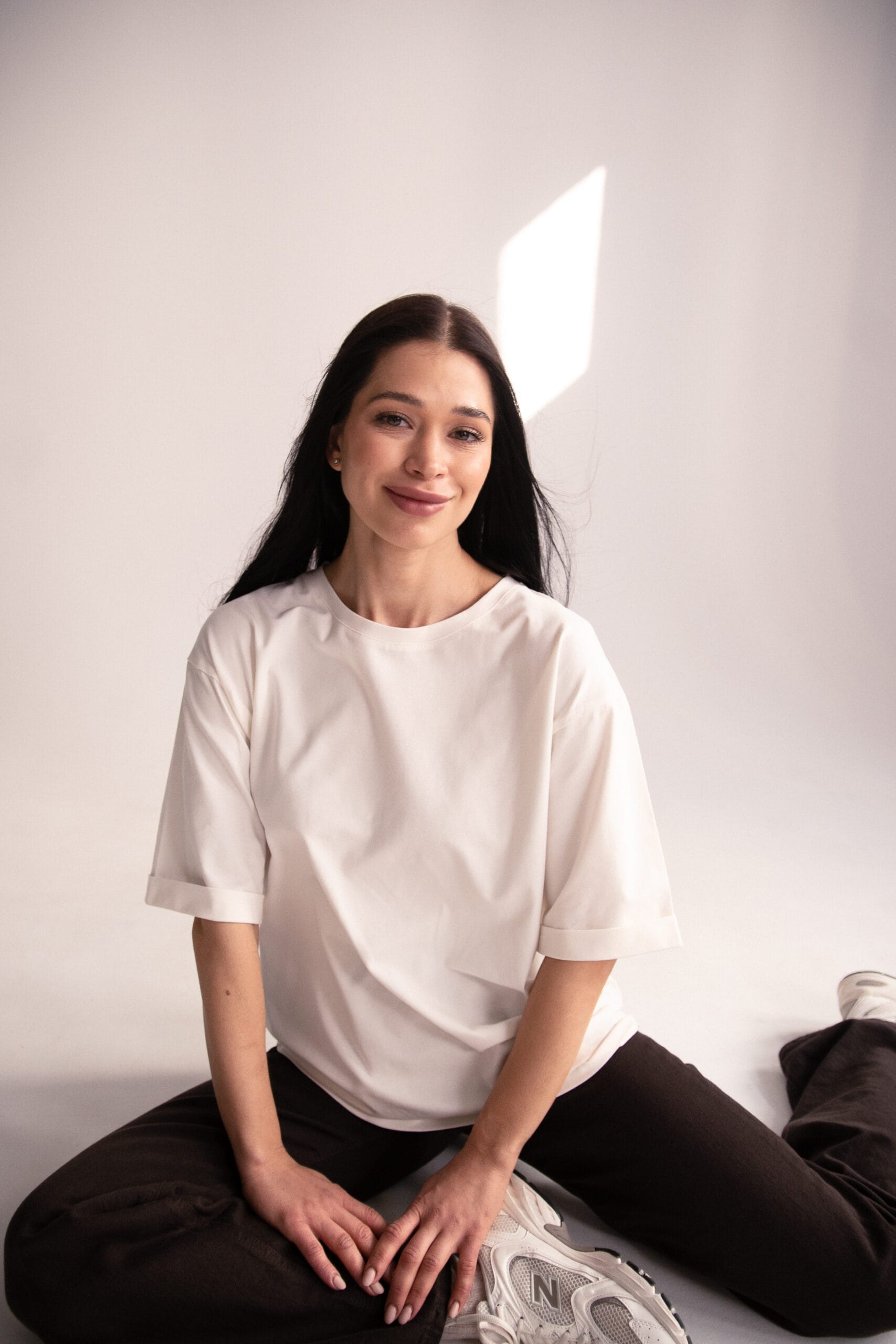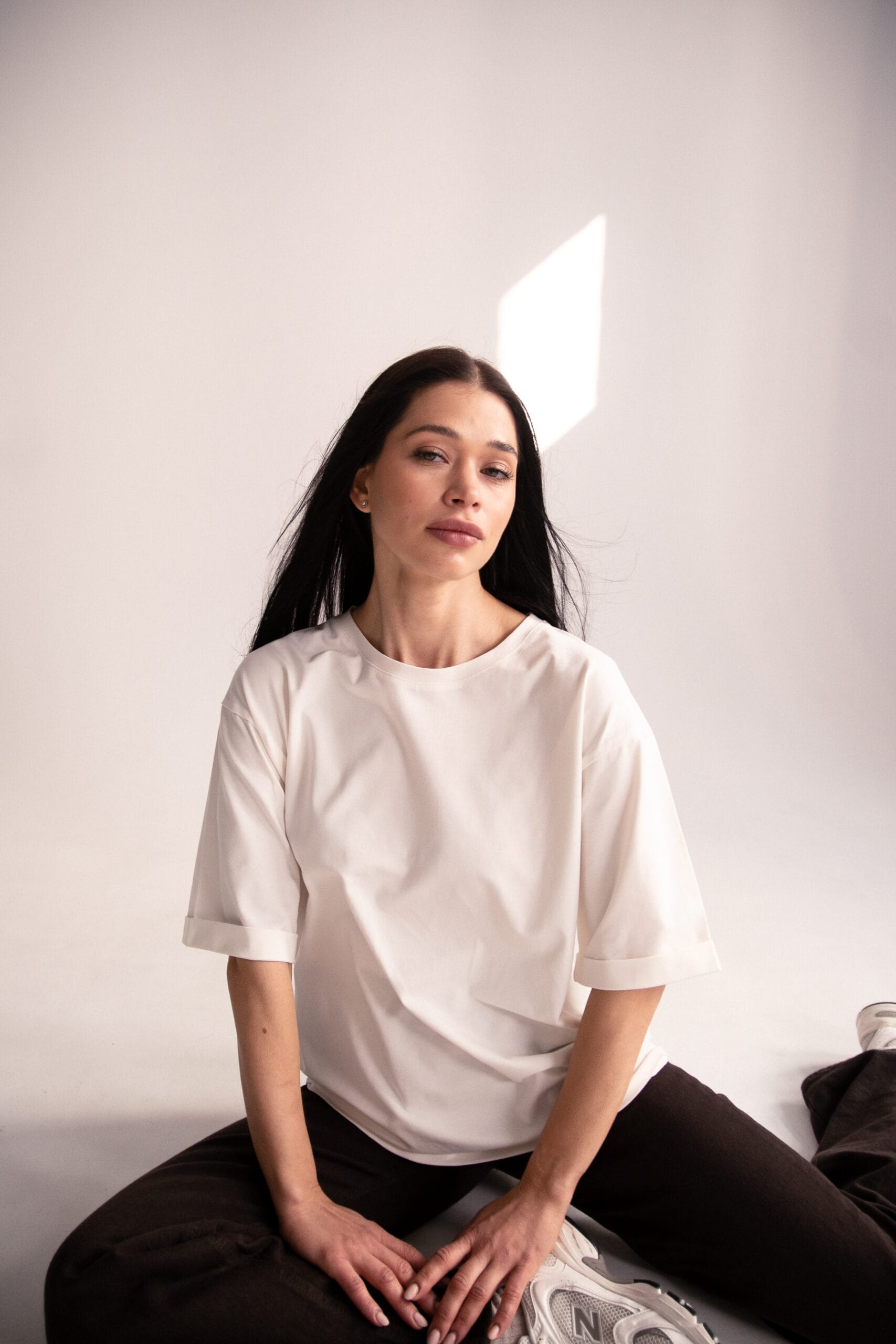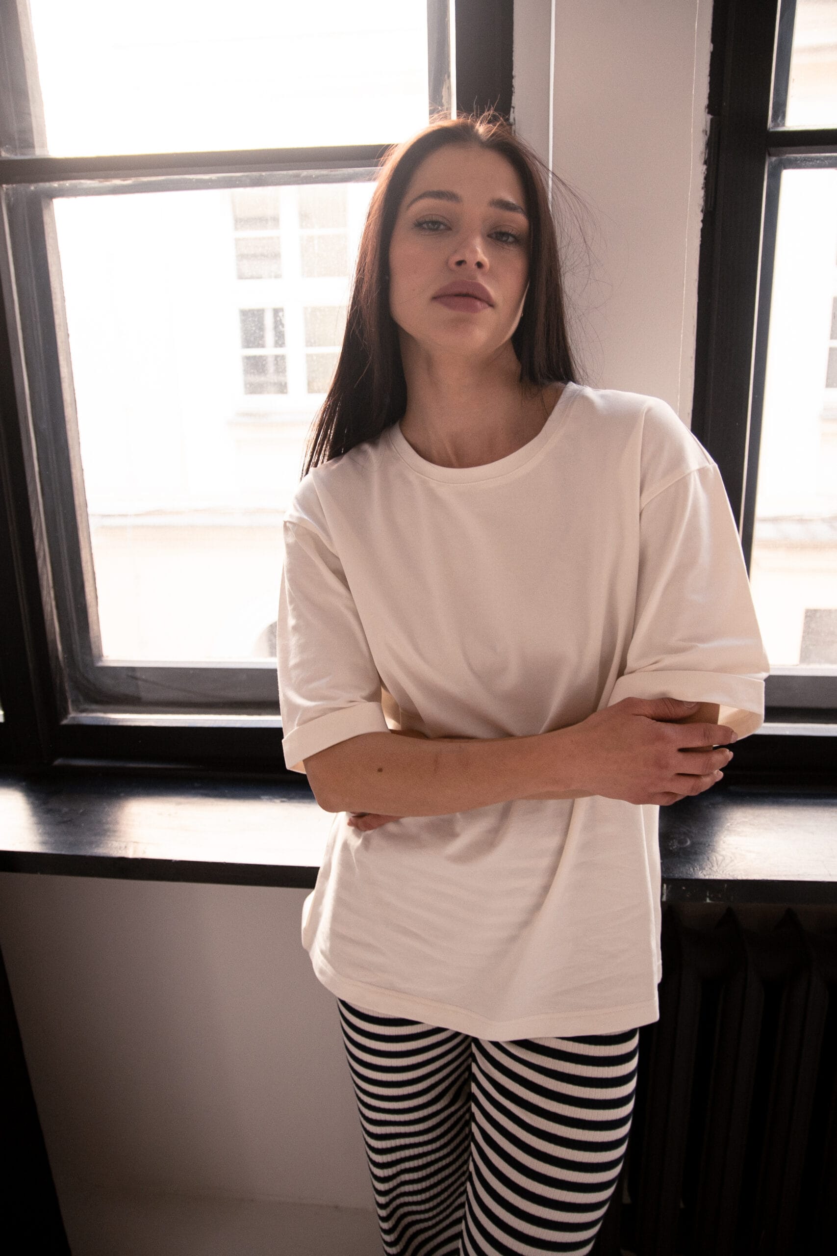 Minimalistyczny, a jednocześnie niezwykle stylowy – biały t-shirt oversize „Soft Touch” to baza, której nie może zabraknąć w Twojej szafie. Wykonany z przyjemnej w dotyku, miękkiej bawełny, zapewnia maksymalny komfort noszenia przez cały dzień. Luźny krój i obniżona linia ramion nadają mu swobodnego charakteru, idealnego zarówno do stylizacji casualowych, jak i bardziej eleganckich w połączeniu z marynarką.